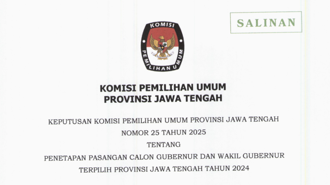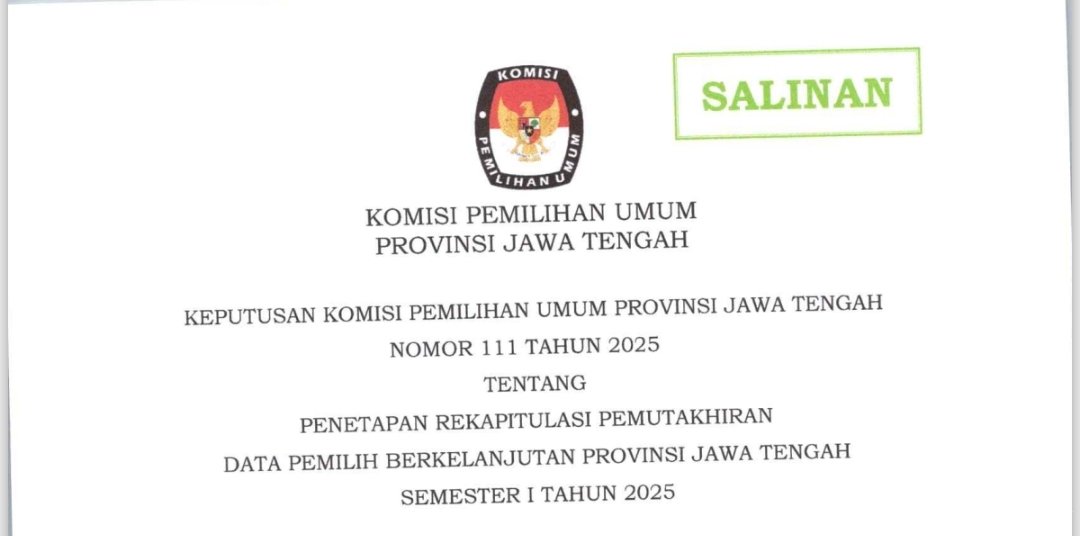 Keputusan KPU Jawa Tengah Nomor 111 Tahun 2025 Tentang Penetapan Rekapitulasi Pemutakhiran Data Pemilih Berkelanjutan Provinsi Jawa Tengah Semester I Tahun 2025 dapat diunduh disini