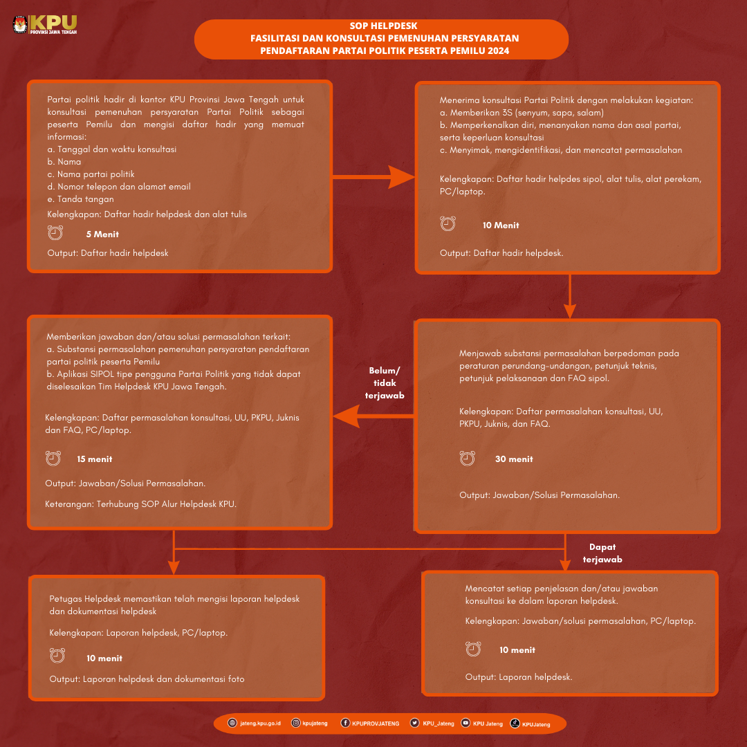 Teman Pemilih apabila kalian memiliki kendala dan membutuhkan konsultasi terkait pemenuhan persyaratan partai politik peserta Pemilu 2024 dan penggunaan SIPOL, Tim Helpdesk KPU Provinsi Jawa Tengah siap untuk melayani dan memfasilitasi. Teman Pemilih dapat berkonsultasi melalui: