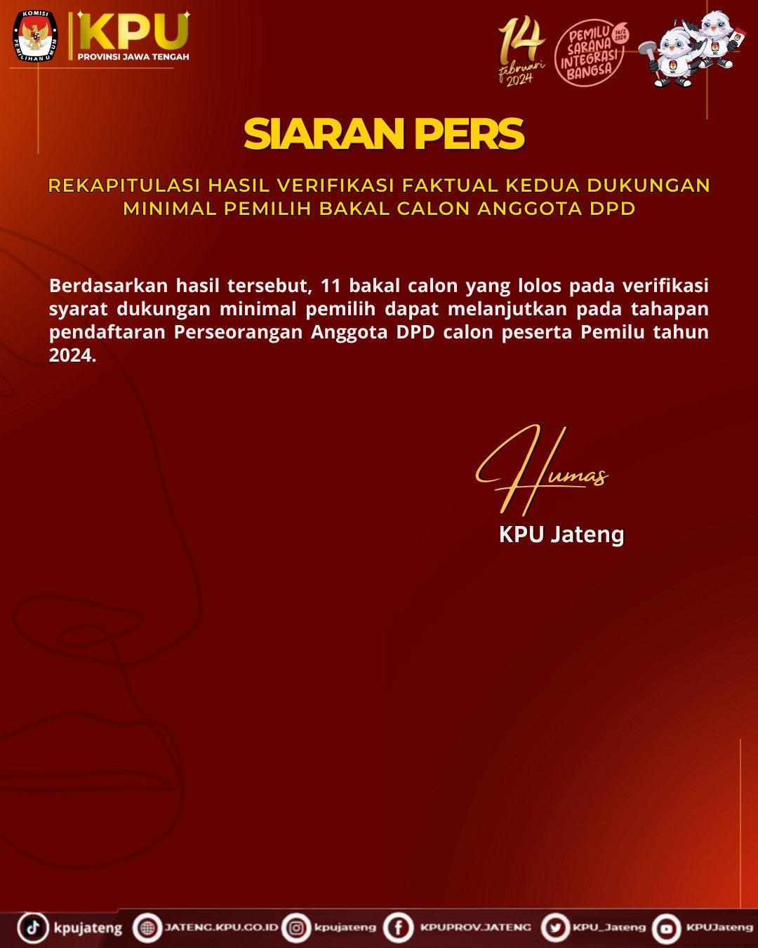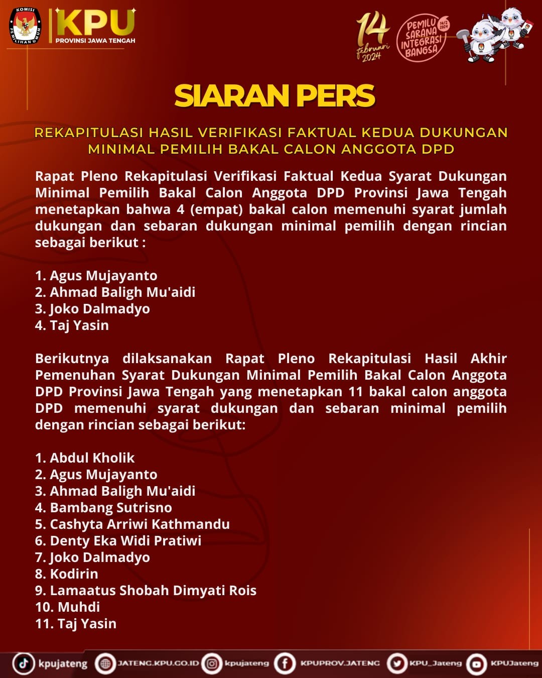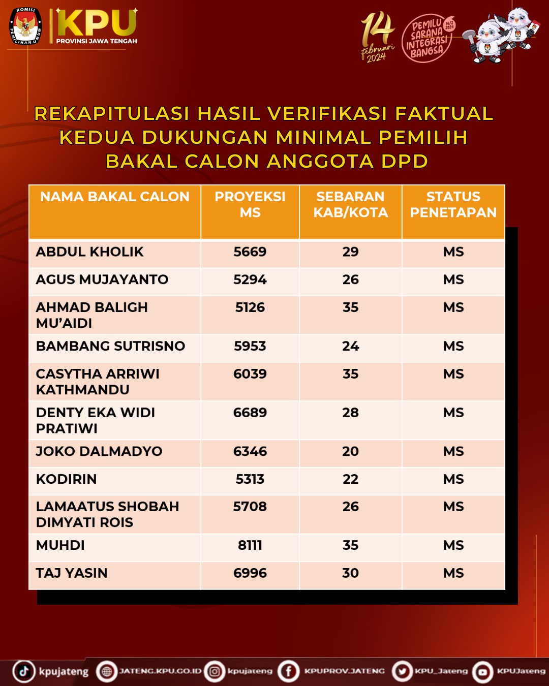 REKAPITULASI HASIL VERIFIKASI FAKTUAL KEDUA DUKUNGAN MINIMAL PEMILIH BAKALCALON ANGGOTA DPD