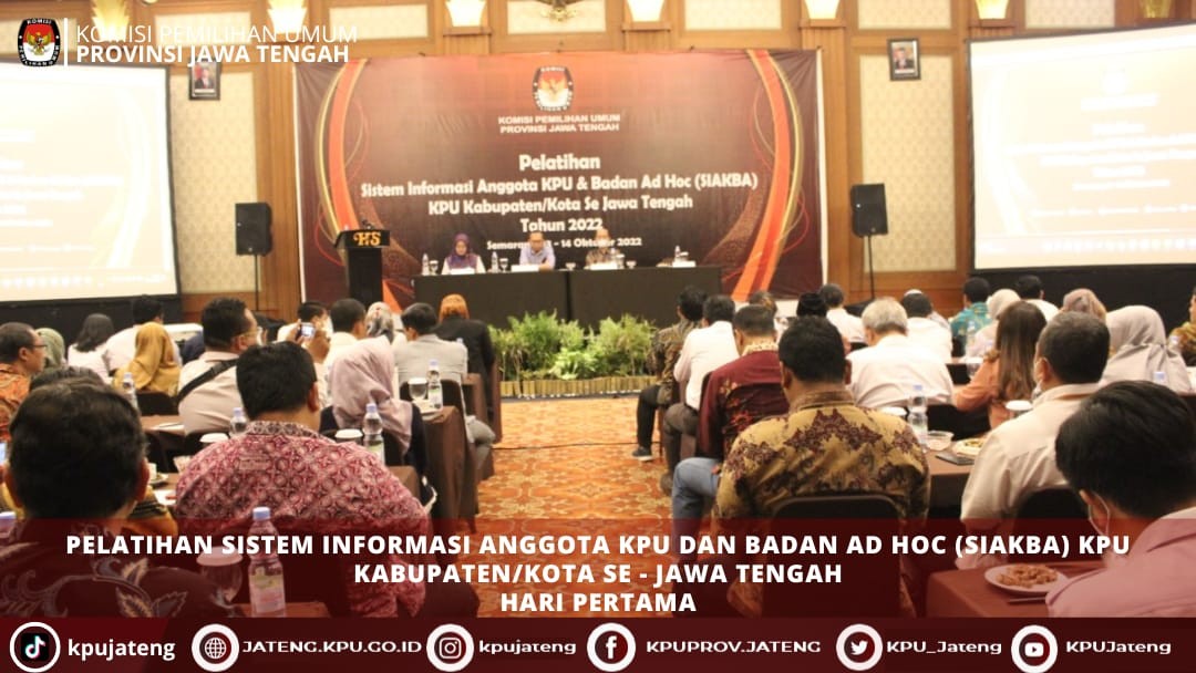 KPU Provinsi Jawa Tengah mengadakan Pelatihan Sistem Informasi Anggota KPU dan Badan Ad Hoc (SIAKBA) KPU Kabupaten/Kota se- Jawa Tengah tanggal 13-14 oktober 2022, bertempat di Hotel Santika, Semarang.