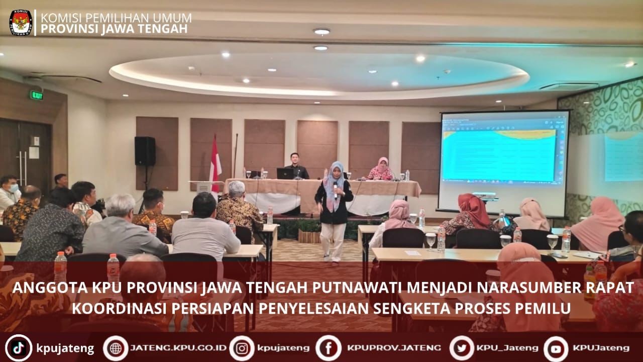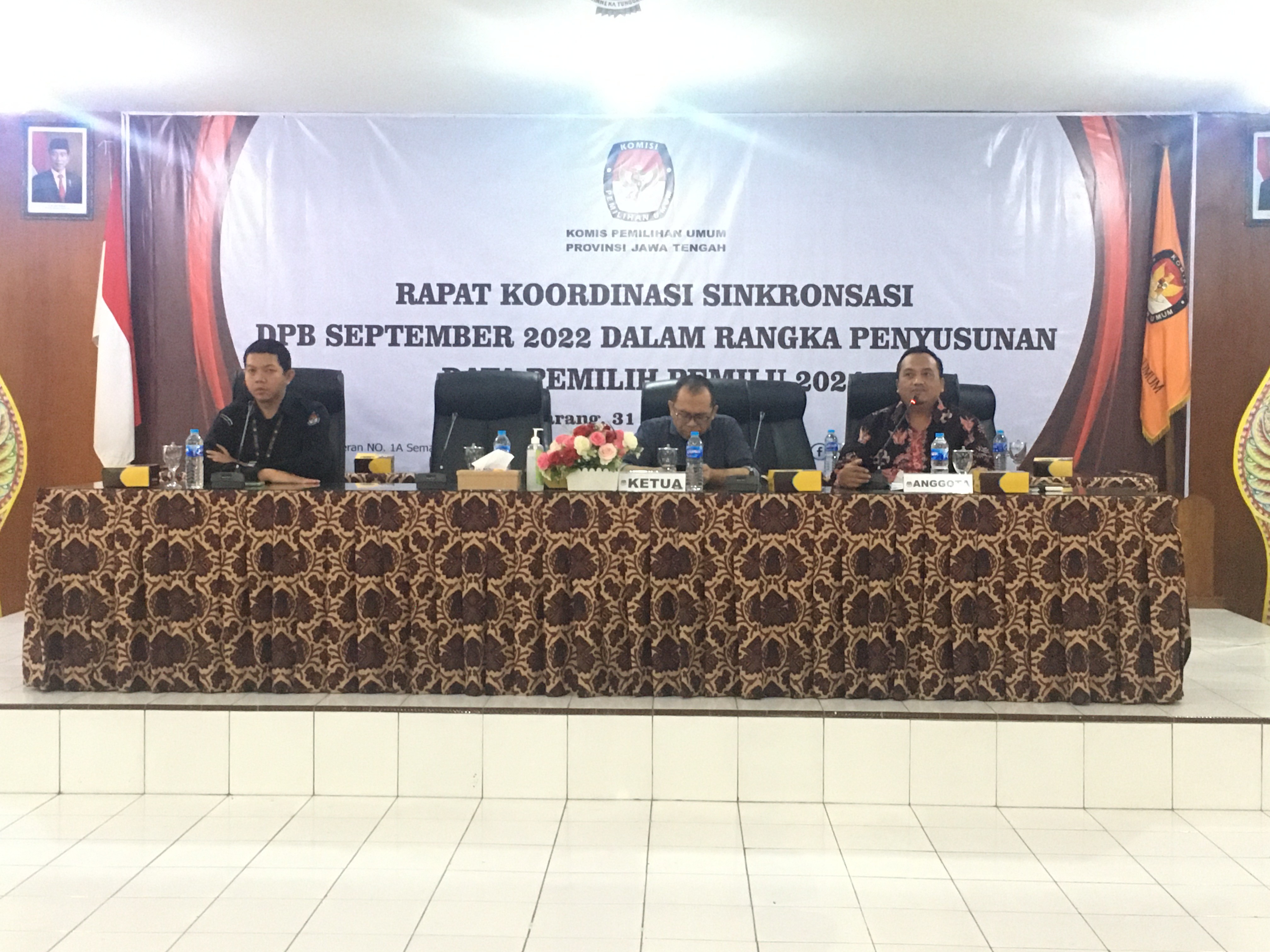 Semarang (31/08) KPU Provinsi Jawa Tengah menyelenggarakan Rapat Koordinasi Sinkronisasi DPB September 2022 Dalam Rangka Penyusunan Data Pemilih Pemilu 2024. Kegiatan ini dihadiri oleh Ketua KPU Provinsi Jawa Tengah, Paulus Widiyantoro, Ketua Div. Data dan Informasi, Henry Wahyono, serta Kabag Rendatin, Sabbikisma Nugraha. Kegiatan ini diikuti oleh 35 satker KPU Kab/Kota se- Jawa Tengah.