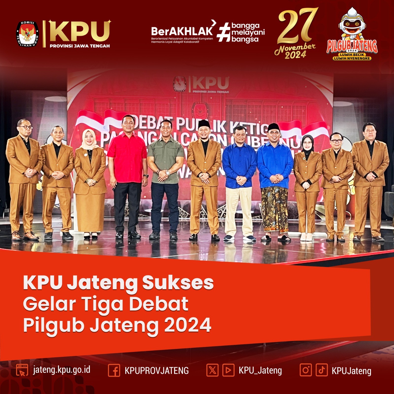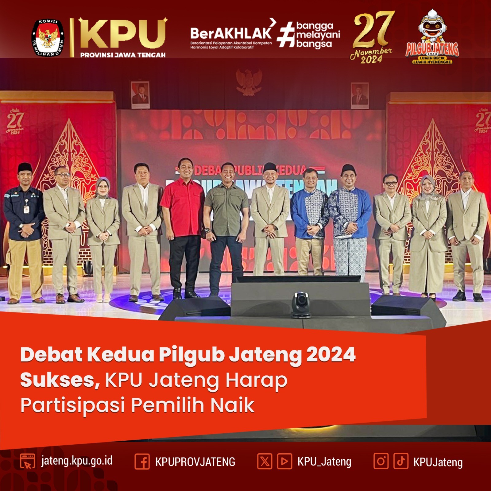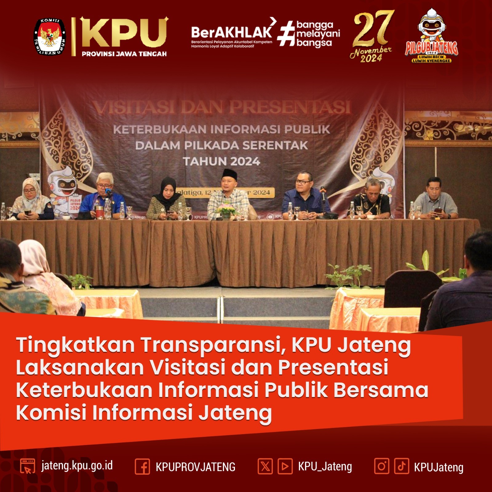 Rangkaian kegiatan ditutup dengan penyerahan Surat Keputusan (SK) Penetapan Lembaga Survei, Jajak Pendapat, dan Hitung Cepat pada Pemilihan Gubernur dan Wakil Gubernur Jawa Tengah Tahun 2024.
