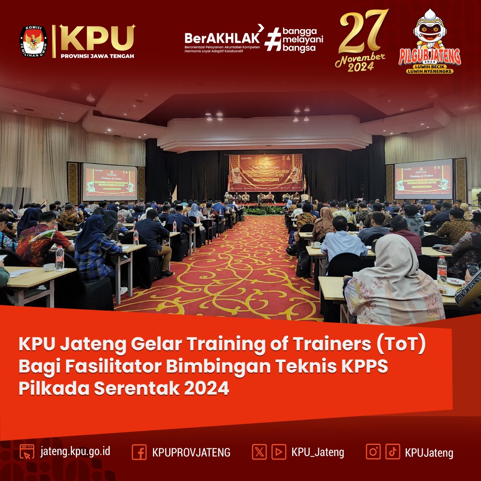 KPU JATENG GELAR ToT BAGI FASILITATOR BIMTEK KPPS PILKADA SERENTAK 2024