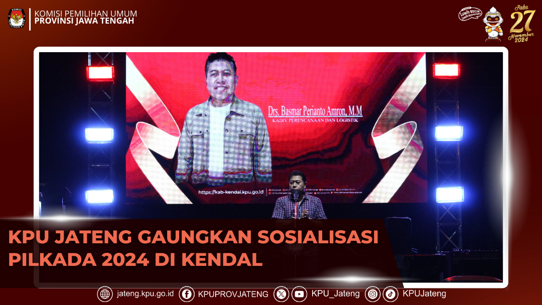 Kendal, 28 Mei 2024- Anggota KPU Provinsi Jawa Tengah, Basmar Perianto Amron, menghadiri acara peluncuran Pemilihan Bupati dan Wakil Bupati Kendal 2024 yang digelar pada hari Selasa (28/05/2024) di Stadion Utama Kebondalem, Kabupaten Kendal. Dalam sambutannya, Basmar menyampaikan apresiasi terhadap antusiasme masyarakat Kendal yang turut menyemarakkan kegiatan peluncuran tersebut dan berharap semangat ini dapat terus berlanjut hingga hari pencoblosan. Basmar mengajak masyarakat untuk aktif mensosialisasikan Pilkada nanti serta menekankan bahwa dalam pemilihan nanti, masyarakat tidak hanya akan memilih Bupati dan Wakil Bupati, tetapi juga Gubernur dan Wakil Gubernur. Dalam acara ini juga diluncurkan Maskot dan Jingle Pemilihan Bupati dan Wakil Bupati Kendal 2024. Maskot yang diberi nama "SI RAJU" (Demokrasi Untuk Rakyat Maju) berbentuk hewan rajungan, yang merupakan salah satu komoditas andalan Kendal. Kehadiran SI RAJU diharapkan dapat menambah semarak dan menarik minat masyarakat terhadap Pemilihan Bupati dan Wakil Bupati Kendal 2024. Kegiatan peluncuran ini semakin meriah dengan penampilan dari Orkes Melayu (OM) ADELLA yang sukses menghibur masyarakat. Dengan peluncuran ini, diharapkan masyarakat Kendal semakin siap dan antusias dalam menyambut Pilkada yang akan datang, serta aktif berpartisipasi dalam menjaga demokrasi di Kabupaten Kendal.