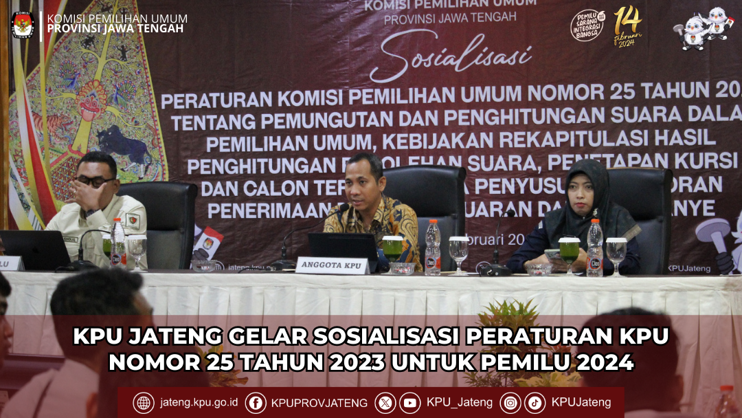 Semarang, 6 Februari 2024 - KPU Jawa Tengah menyelenggarakan acara sosialisasi Peraturan KPU Nomor 25 Tahun 2023 tentang Pemungutan dan Penghitungan Suara Dalam Pemilihan Umum, kebijakan rekapitulasi hasil penghitungan perolehan suara, penetapan kursi dan calon terpilih, serta penyusunan laporan penerimaan dan pengeluaran dana kampanye. Acara tersebut dihadiri oleh peserta pemilu 2024 dari unsur partai politik dan penghubung calon anggota DPD RI Dapil Provinsi Jawa Tengah serta Badan Pengawas Pemilu (Bawaslu) Provinsi Jawa Tengah. Kegiatan yang berlangsung di Hotel Horison Ultima Semarang ini dibuka oleh Anggota KPU Provinsi Jawa Tengah, Ketua Divisi Teknis Penyelenggaraan Pemilu, M. Machruz. Dalam sambutannya, Machruz menyampaikan tentang kebijakan pemungutan dan penghitungan suara di Tempat Pemungutan Suara (TPS) sesuai PKPU no. 25 Tahun 2023. Selain itu, ia juga memastikan bahwa seluruh Kelompok Penyelenggara Pemungutan Suara (KPPS) telah memahami tugas-tugasnya, termasuk penyampaian surat pemberitahuan dan penggunaan formulir Model C.6. "Saat ini tengah dilakukan uji coba Sistem Informasi Rekapitulasi (Sirekap) baik secara offline maupun online, serta pemetaan kualitas jaringan internet di TPS." Imbuhnya Acara dilanjutkan dengan penyampaian materi mengenai kebijakan rekapitulasi hasil suara, penetapan kursi, dan calon terpilih. Terakhir, peserta sosialisasi diberikan materi tentang penyusunan Laporan Penerimaan dan Pengeluaran Dana Kampanye (LPPDK) berdasarkan Peraturan KPU Nomor 18 Tahun 2023 tentang Dana Kampanye Pemilihan Umum. Sosialisasi ini bertujuan untuk memastikan semua pihak terlibat dalam proses pemilu memiliki pemahaman yang mendalam tentang aturan dan prosedur yang berlaku, sehingga proses pemilu dapat berjalan secara adil, transparan, dan demokratis.