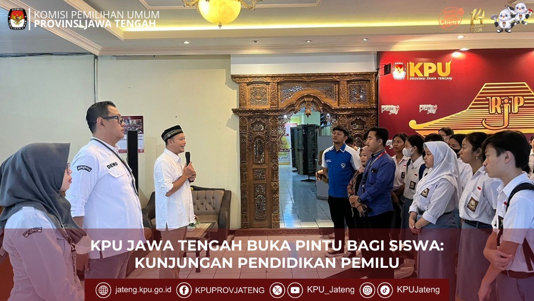 Semarang, 02 November 2023 -Komisi Pemilihan Umum (KPU) Provinsi Jawa Tengah menerima kunjungan dari 45 siswa kelas XI SMA Nusaputera, Semarang. Kegiatan ini merupakan bagian dari program pembelajaran P5 (Projek Penguatan Profil Pelajar Pancasila) yang merupakan inovasi terbaru dalam kurikulum merdeka, bertujuan untuk memberikan siswa pengalaman nyata dalam mewujudkan nilai-nilai luhur Pancasila. Kedatangan siswa-siswi SMA Nusaputera ke KPU Jawa Tengah merupakan langkah yang menginspirasi dalam mendidik generasi muda tentang pentingnya pemilu dan demokrasi dalam masyarakat. Kegiatan ini juga menjadi bukti komitmen KPU Jawa Tengah dalam mendorong partisipasi pemilih pemula dalam proses demokrasi. Ketua KPU Provinsi Jawa Tengah, Handi Tri Ujiono, dengan hangat menyambut kunjungan ini dalam sambutannya. Beliau menyampaikan selamat datang kepada para siswa dan mengundang mereka untuk memperoleh pemahaman mendalam tentang pentingnya kepemiluan. Handi juga berharap bahwa kunjungan ini akan menginspirasi siswa-siswi untuk aktif dalam kehidupan demokrasi dan pemilihan umum. Selanjutnya, kegiatan dilanjutkan dengan tour di Rumah Joglo Pemilu yang dipimpin oleh Kabag Teknis Penyelenggaraan Pemilu dan Parhumas KPU Jawa Tengah, Dewantoputra Adhipermana, yang memberikan penjelasan informatif tentang berbagai aspek pemilu dan proses penyelenggaraannya. Siswa-siswi dengan antusias mengikuti tour ini, menyerap pengetahuan sebanyak mungkin. Sebagai tambahan, para siswa juga mendapatkan kesempatan untuk mengunjungi Studio Podcast KPU Jawa Tengah. Dalam kunjungan ini, mereka dapat merasakan bagaimana sebuah studio podcast beroperasi, sehingga mereka dapat lebih memahami upaya KPU dalam menyebarkan informasi pemilu melalui media digital. Kunjungan ini tak hanya memberikan pengalaman yang berharga bagi siswa-siswi SMA Nusaputera, namun juga memperkuat kerja sama antara lembaga pendidikan dan KPU Jawa Tengah dalam upaya meningkatkan pemahaman dan partisipasi masyarakat, terutama generasi muda, dalam proses demokrasi. KPU Jawa Tengah berkomitmen untuk terus membuka pintu bagi institusi pendidikan dan masyarakat umum untuk mengenal lebih dekat proses demokrasi dan pemilu. Semoga kunjungan ini menjadi langkah awal yang bermanfaat dalam membentuk pemilih yang cerdas dan terlibat aktif dalam pembangunan negara.
