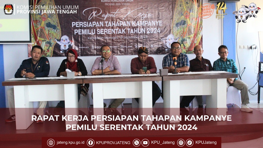 Wonogiri (19/09) KPU Provinsi Jawa Tengah menggelar Rapat Kerja Persiapan Tahapan Kampanye Pemilu 2024. Kegiatan yang berlangsung di Golden Hotel and Resort, Wonogiri pada Selasa, 19 September 2023. Kegiatan ini diikuti oleh 35 Kadiv. Sosdiklihparmas dan SDM KPU Kab/Kota se- Jawa Tengah.