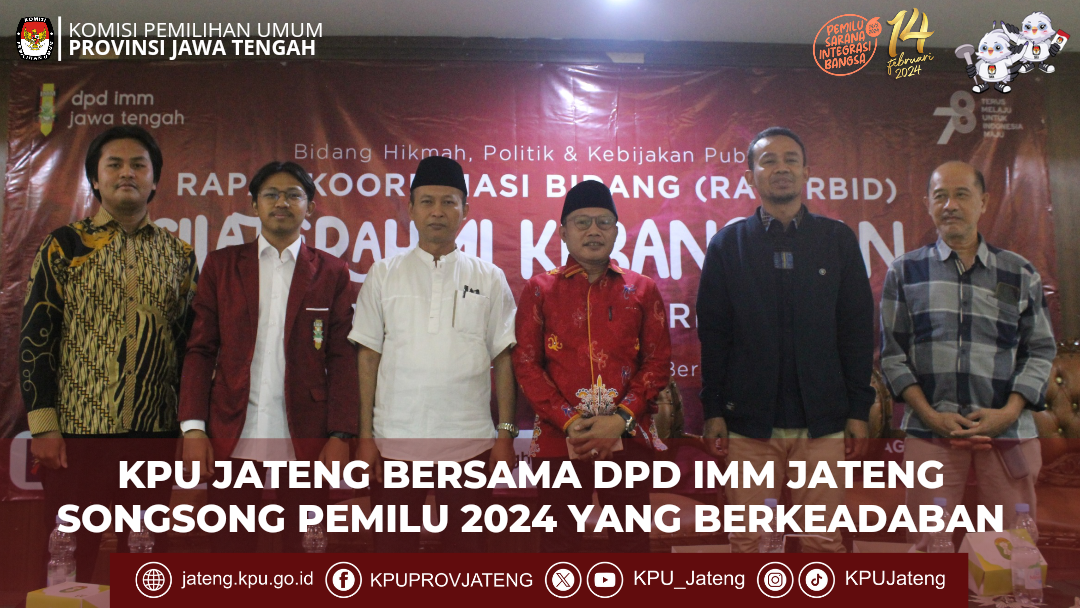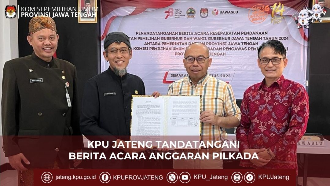 Semarang (10/8) Ketua KPU Provinsi Jawa Tengah, Paulus Widiyantoro, bersama para Anggota, Ikhwanudin, Muslim Aisha, Henry Wahyono, dan Sekretaris KPU Provinsi Jawa Tengah, Rudinal B, menghadiri acara Penandatanganan Berita Acara Kesepakatan Pendanaan Kegiatan Pemilihan Gubernur dan Wakil Gubernur Jawa Tengah Tahun 2024 antara Pemerintah Daerah Provinsi Jawa Tengah kepada KPU dan Bawaslu Provinsi Jawa Tengah di kantor Badan Kesbangpol Provinsi Jawa Tengah.
