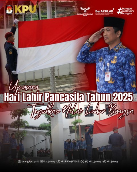 Upacara berlangsung dengan khidmat dan menjadi pengingat akan pentingnya menjaga keberagaman serta semangat persatuan dalam bingkai ideologi Pancasila. KPU Jawa Tengah berkomitmen untuk terus menanamkan nilai-nilai tersebut dalam setiap penyelenggaraan tugas dan pelayanan publik kepada masyarakat.