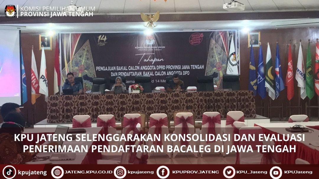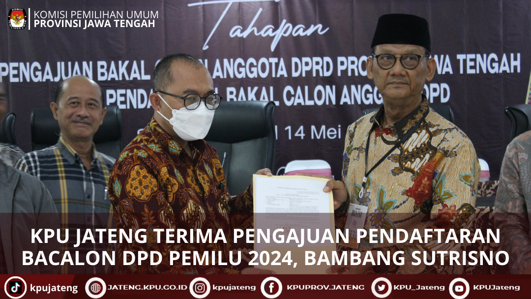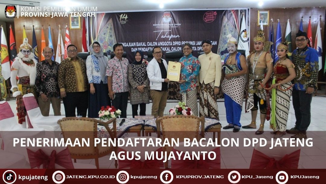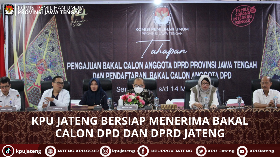 Semarang (01/05) KPU Provinsi Jawa Tengah menyelenggarakan pembukaan tahapan pengajuan bakal calon Anggota DPRD Jawa Tengah dan pendaftaran bakal calon Anggota DPD di Kantor KPU Provinsi Jawa Tengah pada 1 Mei 2023 tepat pada pukul 08.00 WIB.