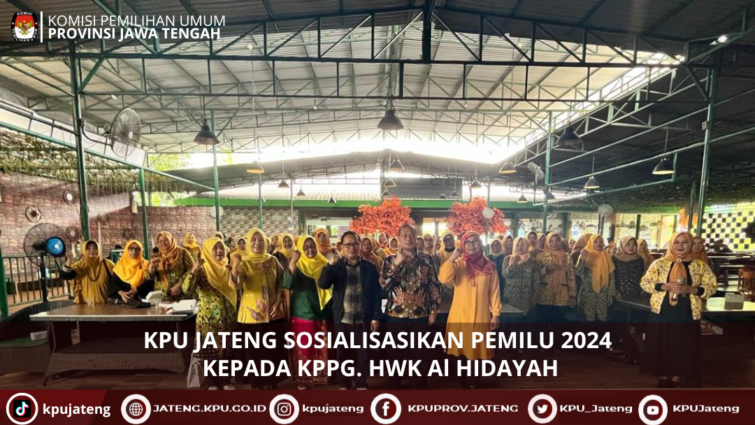 Cilacap (25/02) Anggota KPU Provinsi Jawa Tengah, Muslim Aisha hadir sebagai Narasumber dalam kegiatan Peningkatan Partisipasi Perempuan Dalam Proses Pengambilan Keputusan Sebagai Implementasi Serat Kartini Tahun 2023 yang diselenggarakan oleh DP3AP2KB Jawa Tengah. Kegiatan yang diselenggarakan di New Aroma Cafe,Kab. Cilacap ini diikuti oleh KPPG.HWK Al Hidayah. Selain Muslim, Anggota Komisi E DPRD Provinsi Jawa Tengah, Sidi Mawardi, S.S, MSi turut hadir sebagai Narasumber. Kegiatan ini merupakan upaya pemberdayaan perempuan dalam menghadapi Pemilu dan Pemilihan Serentak di tahun 2024.