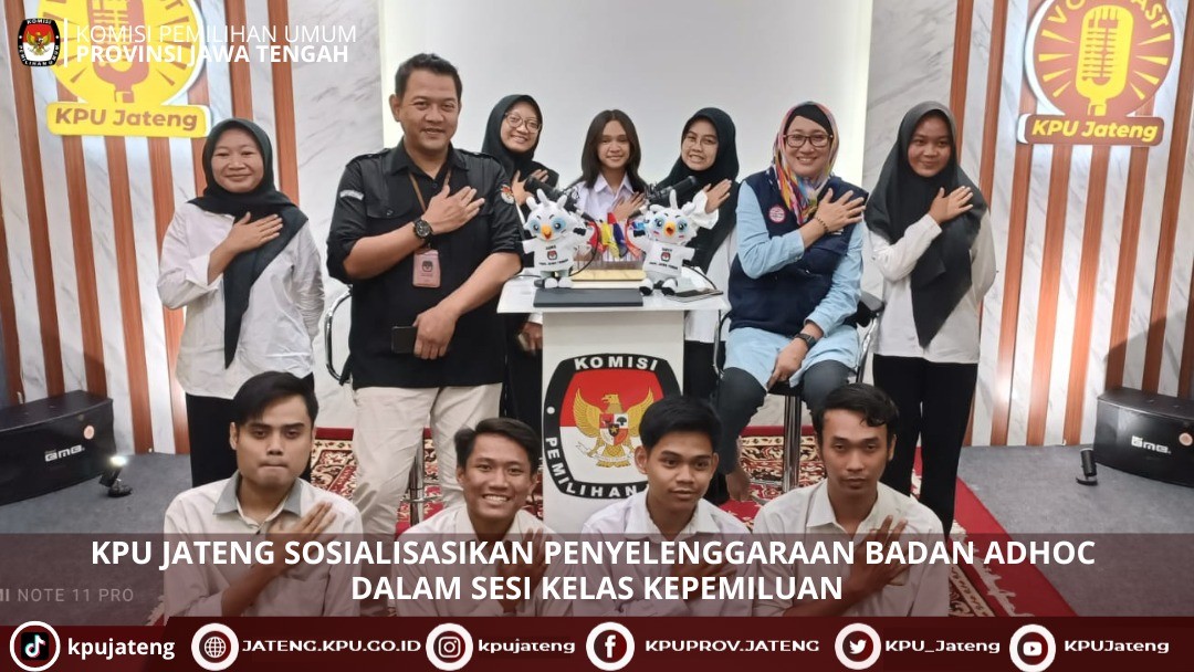 Di sesi kelas kepemiluan kali ini, Eni berharap mahasiswa dan siswa yang sedang menjalankan praktek kerja lapangan di KPU Provinsi Jawa Tengah juga ikut berpartisipasi sebagai badan adhoc pemilu nantinya, misalnya sebagai KPPS di wilayah tinggal masing- masing karena tahapan rekruitmen PPK dan PPS telah berakhir.