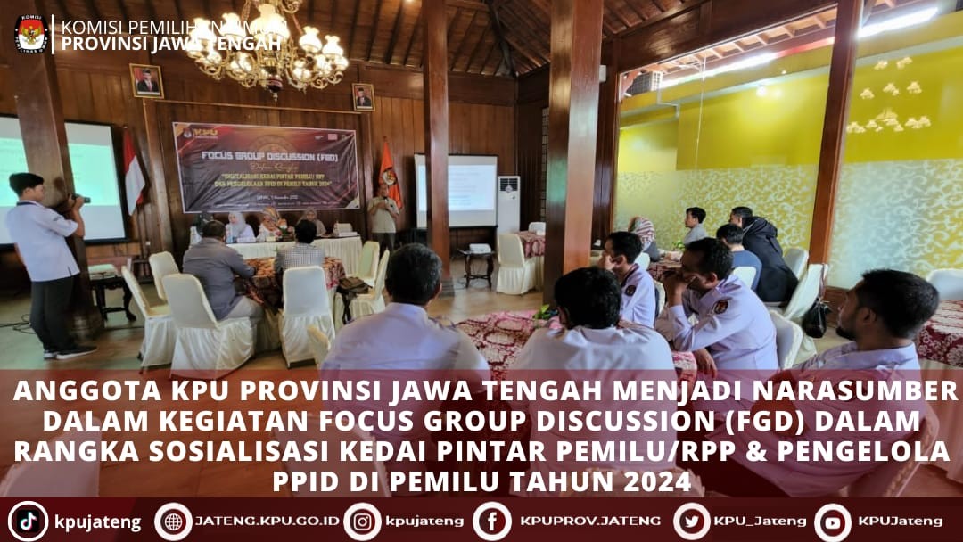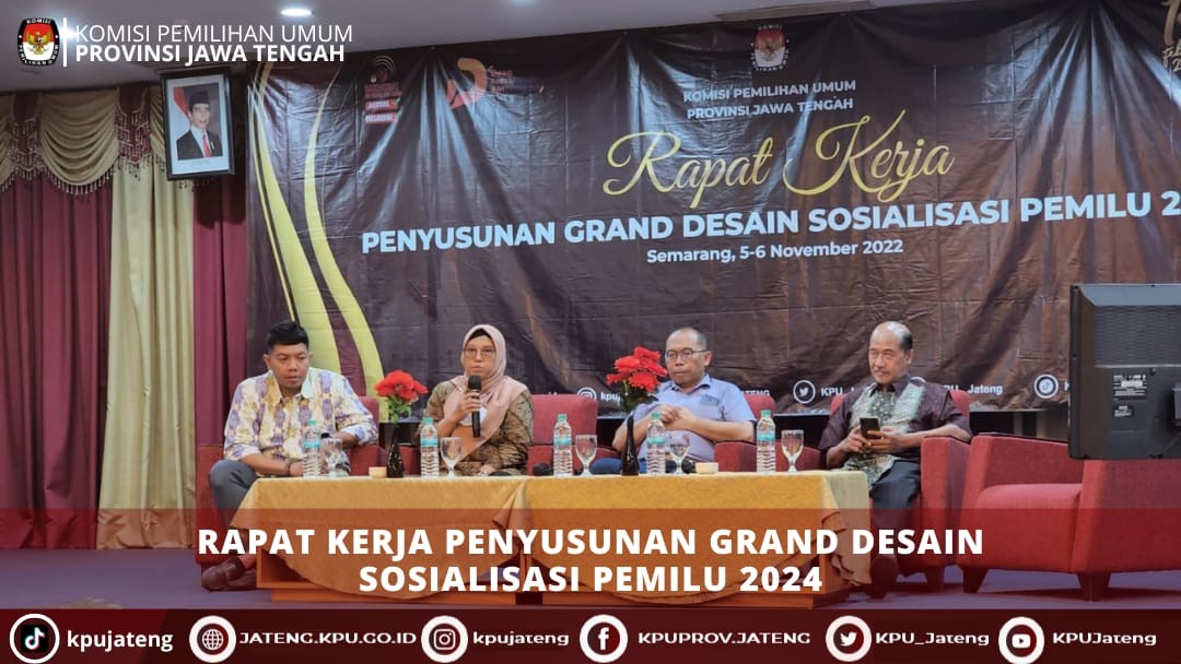 KPU Provinsi Jawa Tengah menyelenggarakan Rapat Kerja Grand Desain Sosialisasi Pemilu 2024 selama dua hari dari tanggal 5 sampai dengan 6 November 2022 di Metro Park View Hotel, Semarang. Kegiatan ini diikuti oleh Ketua Div. Sosdiklihparmas dan SDM serta Operator SIPARMAS KPU Kab/Kota se- Jawa Tengah.