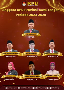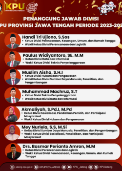 PROFIL ANGGOTA KPU PROVINSI JAWA TENGAH STRUKTUR ORGANISASI ANGGOTA PENANGGUNG JAWAB DIVISI PROFIL ANGGOTA DAPAT DIAKSES DISINI LHKPN DAPAT DIAKSES DISINI Share this artikel : Dilihat 2,069 Kali.