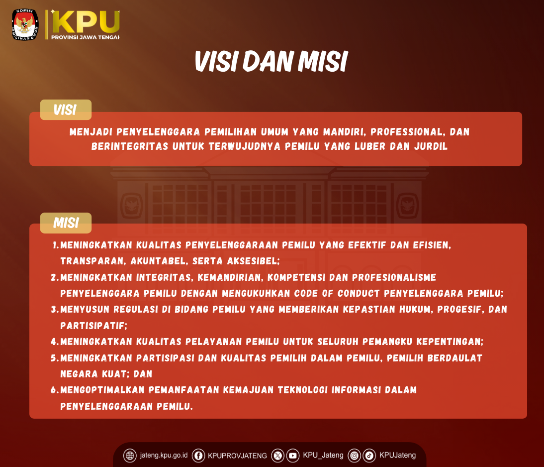 Menjadi Penyelenggara Pemilihan Umum yang Mandiri, Professional, dan Berintegritas untuk Terwujudnya Pemilu yang LUBER dan JURDIL